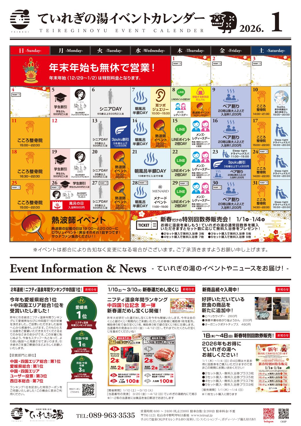 露天、歩行浴、サウナ、打たせ湯、岩風呂などバラエティ豊かな天然温泉に