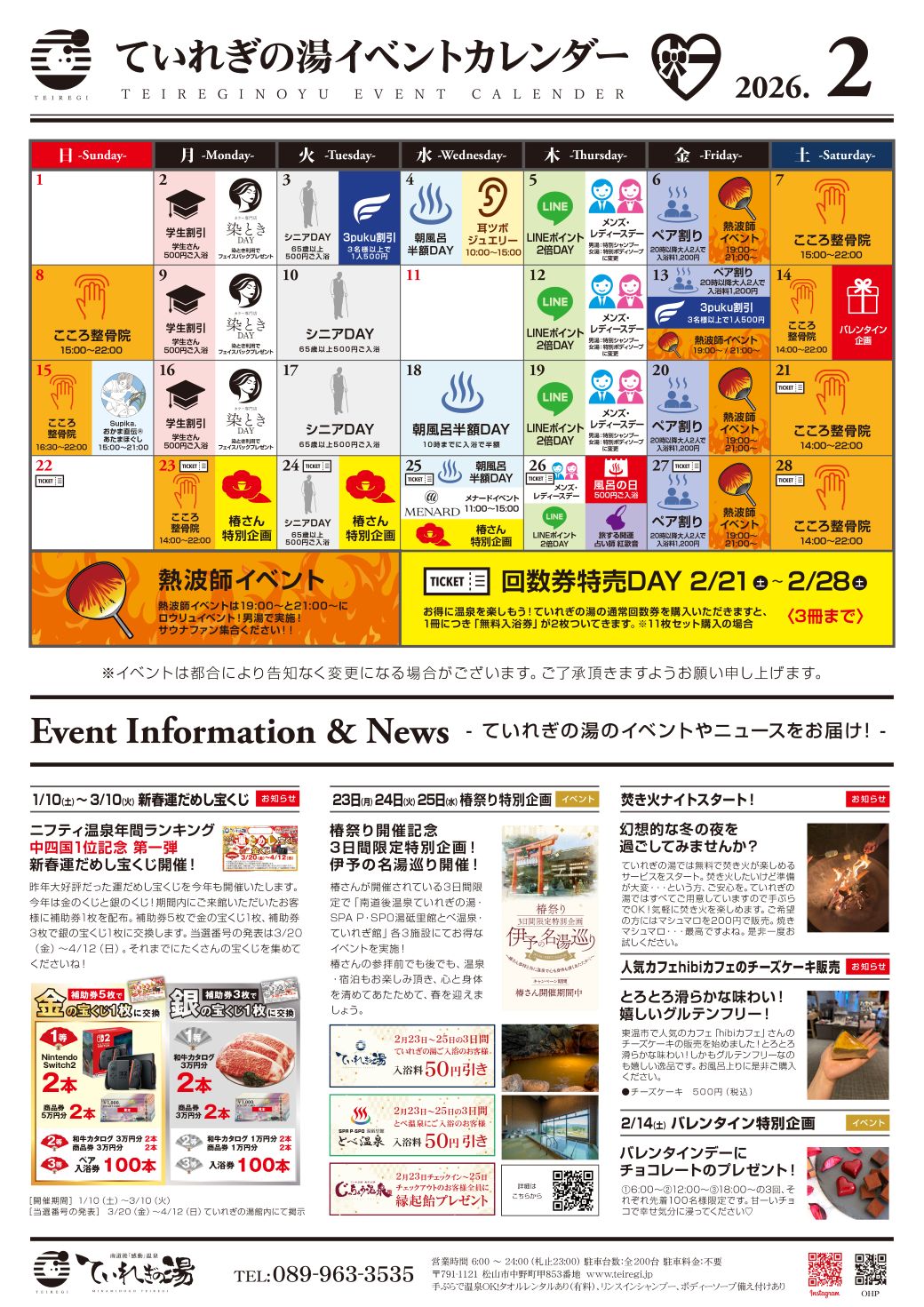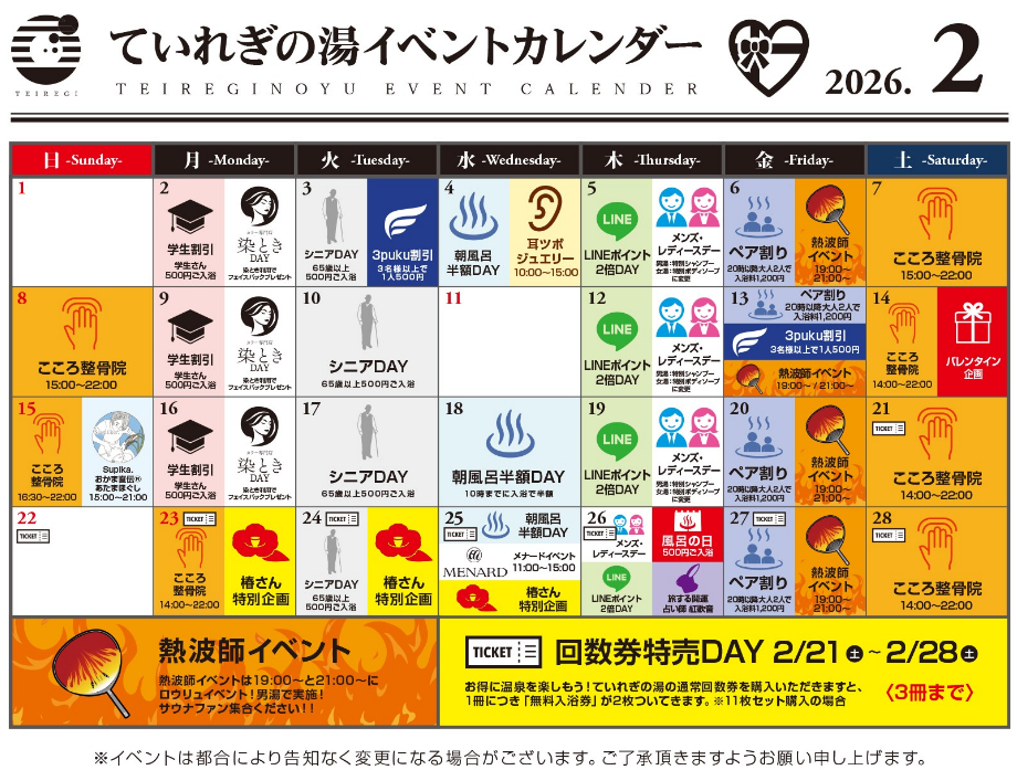 ていれぎの湯からのお知らせ