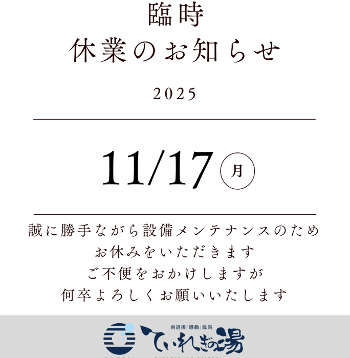 ていれぎの湯からのお知らせ